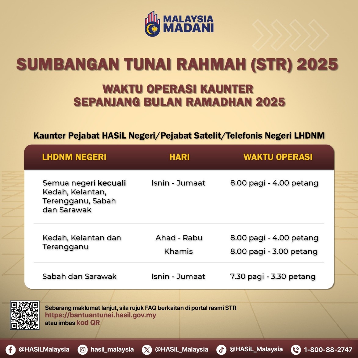 Jadual Perkhidmatan Kaunter Sepanjang Bulan Ramadhan